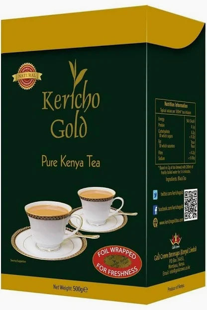 Kericho Gold Pure Kenyan Tea delivers a rich, full-bodied black tea experience rooted in African tea tradition. Sourced from Kenya’s renowned tea-growing regions, this premium tea offers bold flavor, deep color, and a refreshing aroma in every cup. Foil wrapped for freshness and packaged in a generous 500g size, it is designed for daily enjoyment and consistent quality. Whether taken with milk or enjoyed plain, Kericho Gold provides an authentic Kenyan tea experience trusted by tea lovers worldwide.