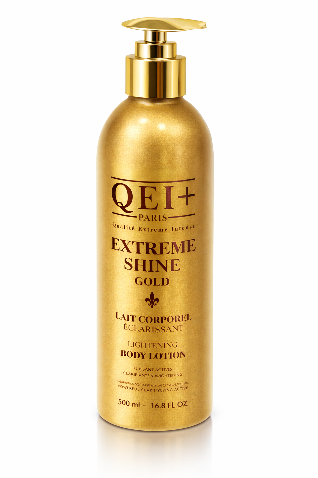 Reveal visibly brighter, smoother, and more radiant-looking skin with QEI+ Paris Extreme Shine Gold Lightening Body Lotion, a premium clarifying and moisturizing body care solution designed to elevate your daily skincare routine.