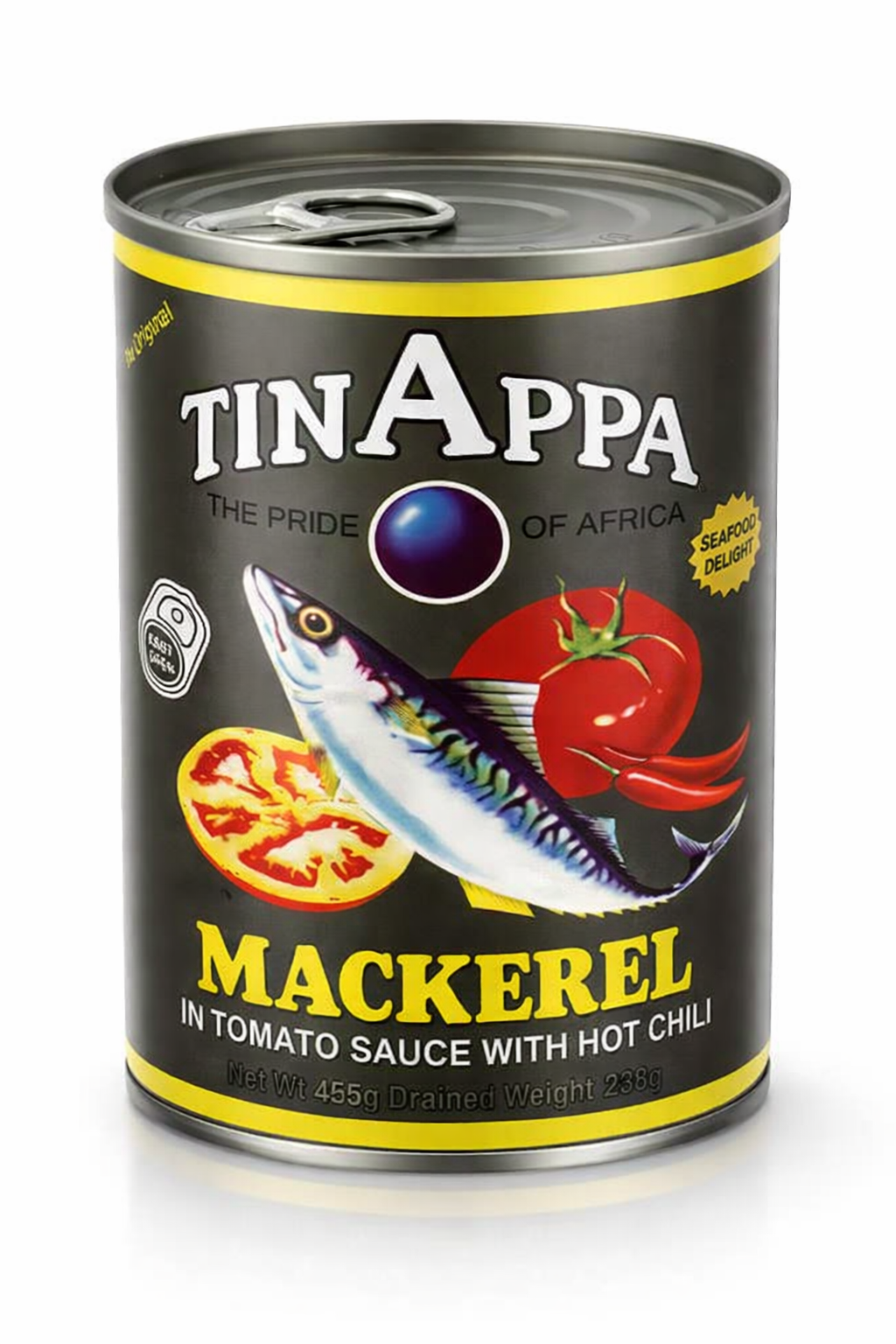 Enjoy bold flavor with Tinappa Mackerel in Tomato Sauce with Hot Chili, combining tender wild-caught mackerel fish with savory tomato sauce and spicy chili for a delicious ready-to-eat seafood experience. Perfect for quick meals, sandwiches, pasta, rice bowls, salads, or traditional African recipes.